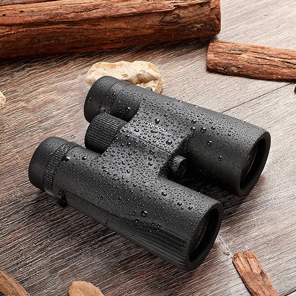 10× betyder tio gångers förstoring. 42 mm är diametern på objektivlinserna och släpper in mycket ljus för en klarare bild.